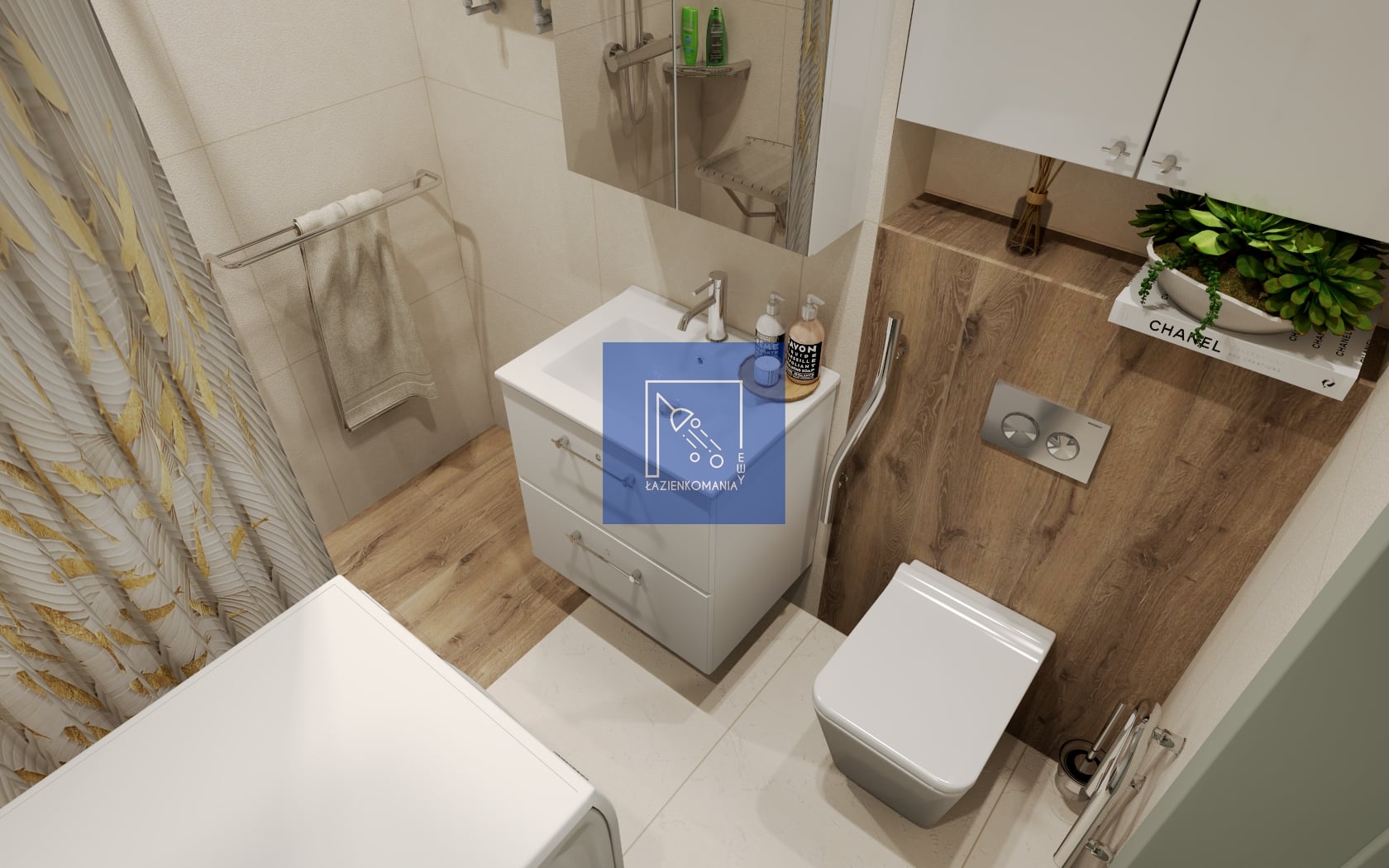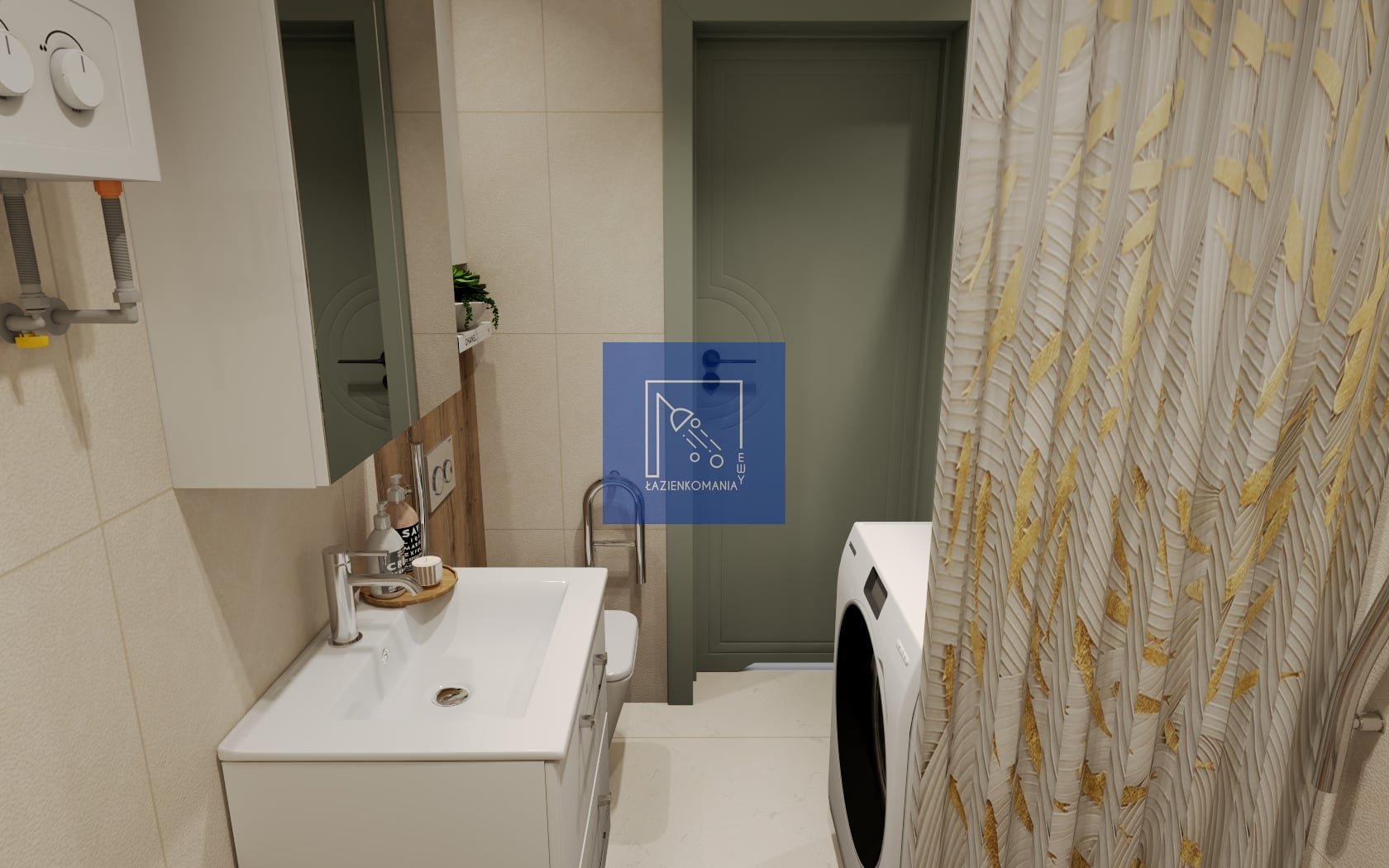 Miałam inny pomysł na to wnętrze, z innym ustawieniem sprzętów. Moja wersja padła, cóż, czasami bywa i tak. Chciałam maksymalnie ułatwić korzystanie z łazienki, która jest niewielkich rozmiarów osobie, która wymaga pomocy przy czynnościach higienicznych. Mój układ funkcjonalny obejmował umieszczenie kabiny z drzwiami składanymi na ścianie w lewym rogu (na wprost wejścia), a pralkę planowałam w rogu prawym. Dzięki akcesoriom typu: składane krzesełko, czy uchwyty w strefie prysznica i przy wc, użytkowanie łazienki i podstawowe czynności staną się łatwiejsze. Najwięcej wiedzą o dostosowaniu pomieszczeń do wymogów osób niepełnosprawnych, osoby korzystające z tych pomieszczeń oraz ich opiekunowie, którzy są obecni na co dzień, asystując przy podstawowych czynnościach.