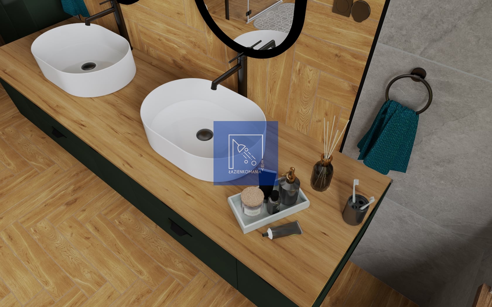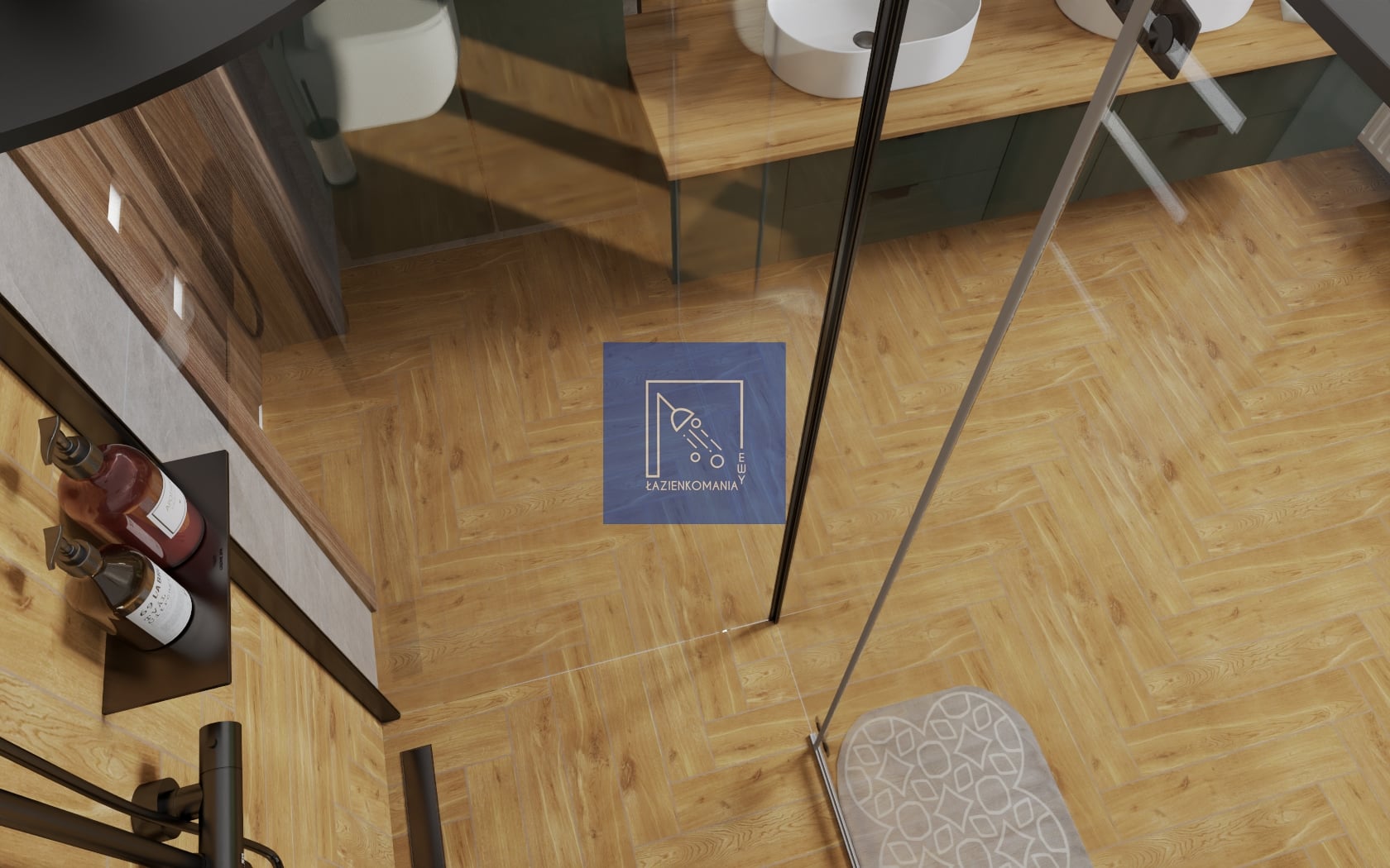 Wstęp już znacie, łazienka w odcieniach szarości, deski w jodełkę i czerni. Ale te meble! One tu zaistniały. 👽 Przełamały tą rutynę. Jestem na 10xTAK, albo i ze 1000xTAK.