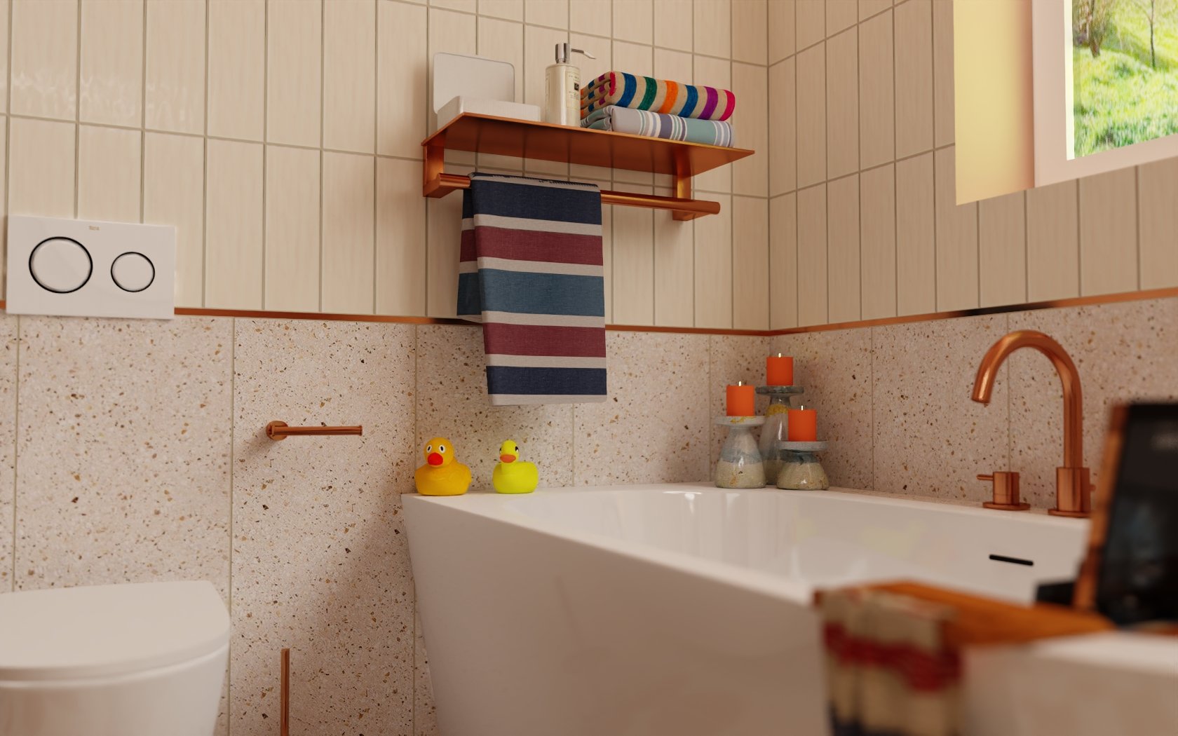 Lubię łazienki z kolorem. Dlaczego? Bo wnętrze jest przyjemne dla oka i pozytywnie nastraja. Z chęcią tworzę wnętrza, w których płytki nie są jednolite, nie zgadzam się na jeden ich rodzaj. Dlaczego nie tworzyć czegoś z wyobraźnią? Czegoś niepowtarzalnego? Bardzo, ale to bardzo lubię szukać połączeń i zestawiać ze sobą różne materiały. Tak pracuję i właśnie tak wykorzystuję swoją kreatywność.