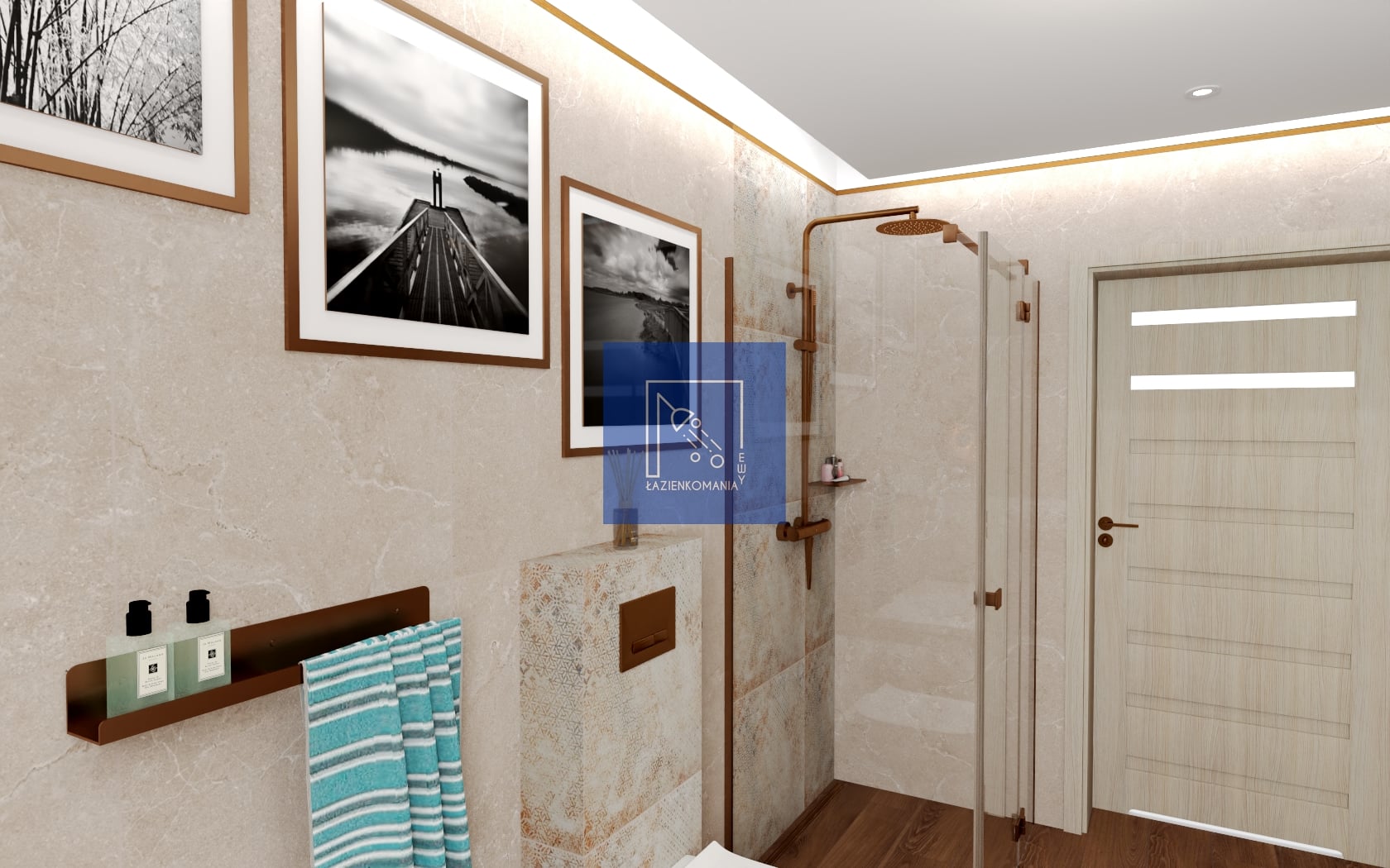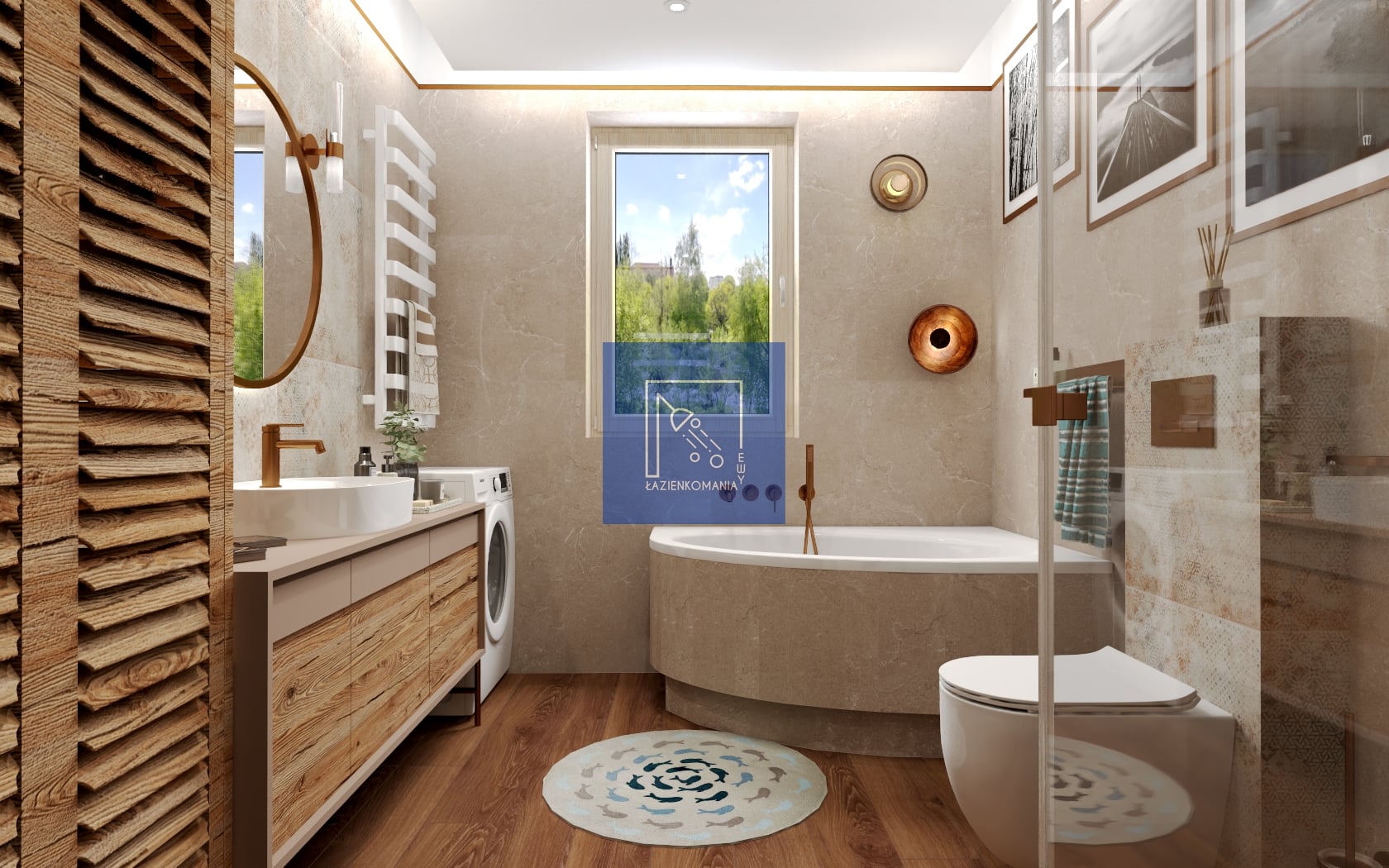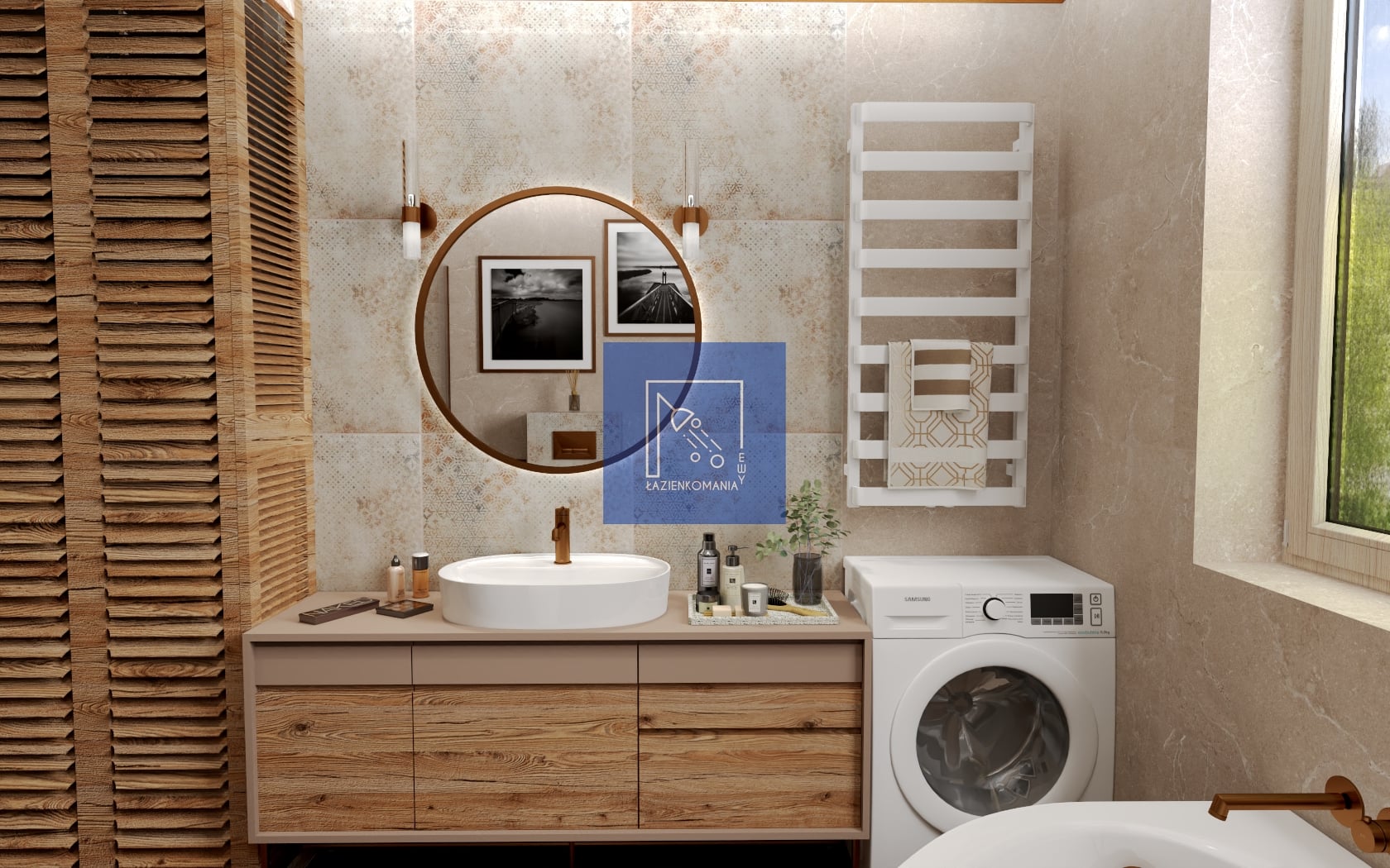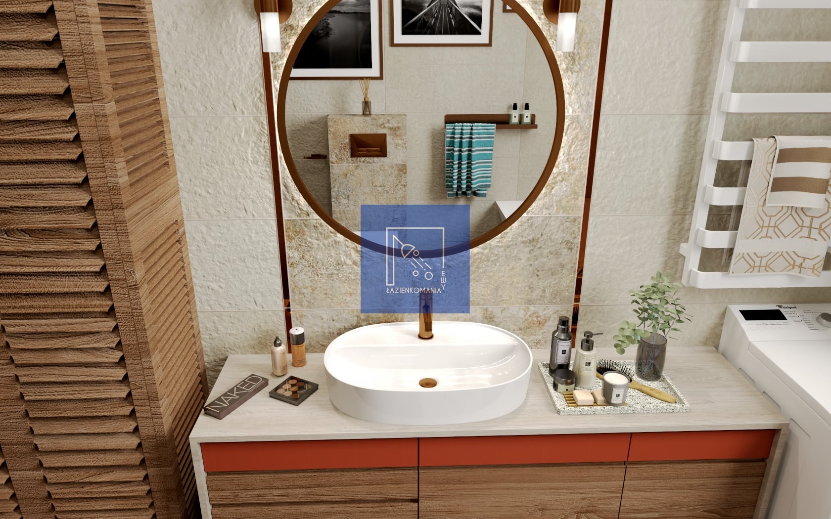 Szukałam najbardziej odpowiedniego ustawienia sprzętów (bez przeróbki instalacji wodno-kanalizacyjnej). Uwzględniłam uwagi Klientów, ale wniosłam do wnętrza swoje pomysły i rozwiązania. Ta wielka szafa z shuttersami skrywa piec i skrzynkę sterowniczą, bo nie chciałam by te sprzęty były widoczne.